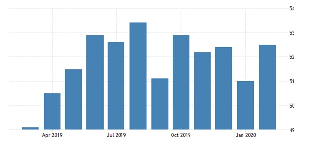 Růst podnikatelské aktivity v eurozóně se v únoru jen mírně zvýšil. PMI v sektoru služeb stoupl na 52,6 bodu z 52,5 bodu v lednu. Rychlý odhad činil 52,8 bodu. Kompozitní PMI pak stoupl v souladu s odhady na 51,6 bodu z 51,3 bodu.