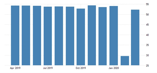 Jde o nejrychlejší růst aktivity ve výrobě od září 2017, především díky tomu, že restrikce spojené s šířením koronaviru byly omezeny a produkce v továrnách výrazně akcelerovala. K růstu došlo jak v produkci (růst z 27,8 bodu na 54,1 bodu), tak i v nových objednávkách (z 29,3 bodu na 52 bodů), nákupní aktivitě (z 29,3 bodu na 52,7 bodu) nebo zaměstnanosti (z 31,8 bodu na 50,9 bodu).