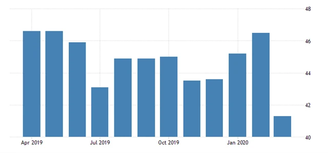Pokles zaměstnanosti byl v březnu nejprudší od září 2009 a i rozpracovanost klesla nejrychleji za čtyři měsíce. Vyhlídky výrobců na výrobu v příštím roce klesly. Důvěra se snížila na minimum od začátku sběru těchto dat v dubnu 2012. Na podnikatelská očekávání dolehla nejistota z možného dlouhotrvajícího dopadu nákazy, a to zejména na již postižený automobilový sektor. Ceny vstupů ve zpracovatelském sektoru vzrostly druhý měsíc v řadě v důsledku nedostatku surovin. Zvýšení bylo ale nepatrné. Firmy znovu snížily ceny svého zboží, aby přilákaly klienty a udržely si konkurenceschopnost.