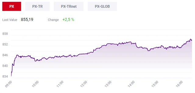 Pražská burza posílila o 2,5 %, premiantem byly akcie CME
