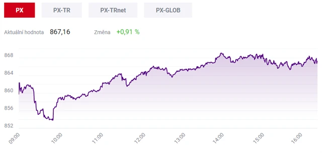 Pražská burza v úterý opět posílila, táhly ji akce Erste Group Bank