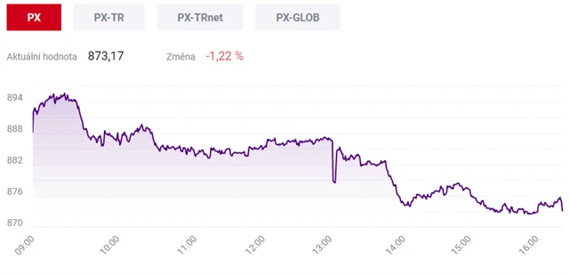 Pražská burza ve čtvrtek nenavázala na zisky z předchozích tří dnů a po slibném začátku nakonec skončila v minusu. Index PX ztratil 1,22 % na 873,17 bodu. Dolů ho táhly hlavně akcie Erste Group Bank, elektrárenské společnosti ČEZ, technologické společnosti Avast a Monety Money Bank. Se ztrátou skončila většina hlavních titulů.