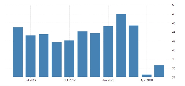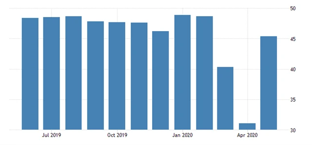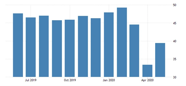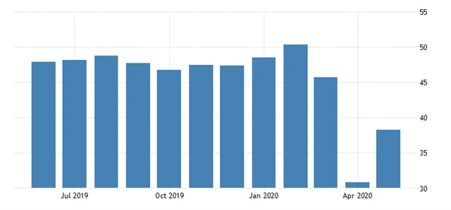 Index podnikatelské aktivity ve zpracovatelském sektoru v květnu vzrostl na 39,4 bodu z dubnového historického minima 33,4 bodu. Stále se však nachází hluboko pod klíčovou padesátibodovou hranicí, která je předělem mezi růstem a poklesem aktivity.