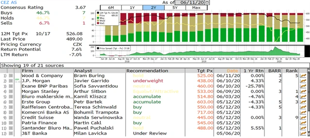 JPMorgan Chase snížila cílovou cenu akcií ČEZ na 438 Kč, Exane BNP Paribas ji naopak zvýšila na 460 Kč