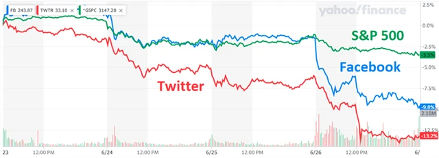 Akcie Facebooku a Twitteru v pátek kvůli bojkotu výrazně oslabovaly. "Reklamu pozastavujeme, dokud Facebook nevytvoří přijatelné řešení, které nás uklidní a které bude v souladu s řešením, jaké máme s YouTube a dalšími partnery," řekl mluvčí Verizonu. Unilever ve svém prohlášení poukázal mimo jiné na polarizovanou atmosféru před listopadovými prezidentskými volbami v USA.
