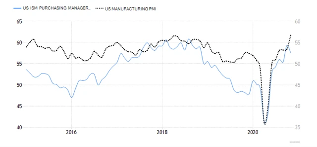 Tempo růstu aktivity v americkém zpracovatelském sektoru v listopadu stouplo. Index nákupních manažerů (PMI) ve výrobě od společnosti IHS Markit podle finálních dat vzrostl na 56,7 bodu z říjnových 53,4 bodu a byl tak v souladu s předběžnou zprávou. Ukazatel od ISM naopak klesl na 57,5 bodu z 59,3 bodu v říjnu (odhad: 58 bodů).