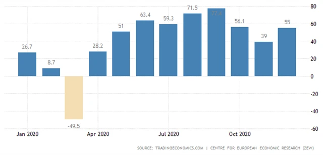 Důvěra investorů a analytiků v německou ekonomiku se v prosinci výrazně zvýšila. Přispělo k tomu očekávání, že vakcína proti nemoci covid-19 podpoří budoucí hospodářský vývoj. Vyplývá to z průzkumu, jehož výsledky v úterý zveřejnil institut ZEW.