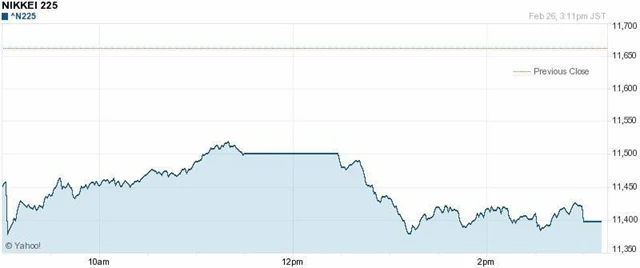 Hlavní index tokijské burzy Nikkei 225 v závěru dne klesl o 2,3 % na 11 398,81 bodu. V úterý se index růstem o 2,4 % dostal nejvýše od září 2008.