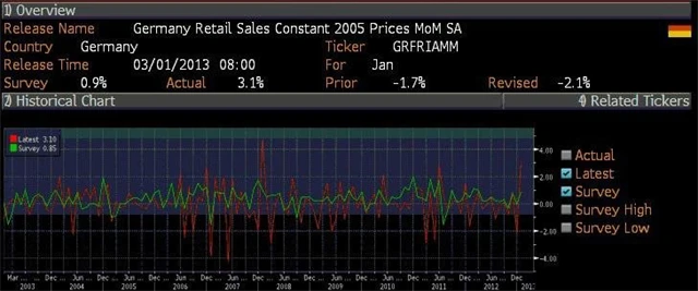 Lednový růst tržeb výrazně překonal očekávání analytiků, kteří jej odhadovali na rovné jedno procento. V prosinci se tržby podle revidovaných údajů propadly o 1,7 %.
