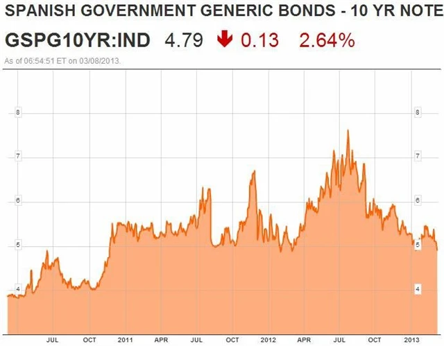 Španělsko: Výnos desetiletých dluhopisů klesl na 4,79 % (nejníže od podzimu 2010) Redakce IW8. 3. 2013 | 11:51Zdroj: BloombergRedakce IW Další články autoraAkciový býk pádí vyspělými trhy. A není to jen americké témaTOP 10 článků týdne: Vize Nvidie, americké akcie a víra ve zlatoOčekávané výsledky světových firem v týdnu od 3. listopadu: McDonald’s, Palantir, Ryanair, BMW DoporučujemeNestihli jste naskočit do zlaté rally? Vůbec není pozdě, říká stratégZlatoRychlé peníze ve velkém opustily zlato a stříbro. Trh se připravuje na další růstZlatoAuto jako služba: Operativní leasing stále více láká domácnostiFinanční sektor Aktualitydnes | 0:00Co musíte dnes vědět (3. listopadu): Kdo je spokojený ve vlastní zemi?2. 11. | 22:14Čínský prezident podle Trumpa slíbil, že za jeho pobytu v Bílém domě nepodnikne žádné kroky vůči Tchaj-wanu2. 11. | 18:43OPEC+ v prosinci zvýší těžbu ropy o dalších 137 tisíc barelů za den2. 11. | 15:15Hampl: Zestátnění ČEZ je drahý nesmysl, prostor pro snižování daní vláda mít nebude2. 11. | 9:31Akciový býk pádí vyspělými trhy. A není to jen americké téma1. 11. | 17:00Buffettův indikátor je fake news. Drahé americké akcie mají logiku1. 11. | 15:24Buffettova Berkshire Hathaway v kvartálu výrazně zvýšila zisk, v hotovosti má už 381 miliard dolarů1. 11. | 14:07Dálniční boom v Česku: Vzniká prostor pro nová průmyslová centra, mapa české logistiky se mění1. 11. | 10:55Nová starost pro trh s drahými kovy: Čína zrušila daňové zvýhodnění pro obchodníky1. 11. | 9:37Kolik budou v roce 2026 platit OSVČ na paušální dani?31. 10. | 21:30Závěr týdne se na amerických burzách vydařil. Investoři sčítají zisky za pátek, týden i celý měsíc31. 10. | 18:00Evropské akciové indexy v pátek klesly. V týdenním horizontu se na směru neshodly, říjen už ale pro ně byl ziskovýZobrazit všechny aktuality Nejčtenější tento týden1.Nestihli jste naskočit do zlaté rally? Vůbec není pozdě, říká stratég2.Rychlé peníze ve velkém opustily zlato a stříbro. Trh se připravuje na další růst3.Auto jako služba: Operativní leasing stále více láká domácnosti4.Čtyři důvody, proč po korekci nakupovat akcie evropských zbrojovek5.Buffettův odkaz: Trpělivost jako klíč k investičnímu úspěchu6.Modlitba pasivního investora a jak podle expertů (ne)investovat v celní bouři Sledujte násinvesticniweb.cz14000Investiční web19300LIVE2300Investiční web1000investicni_web500Investicniweb.cz33600