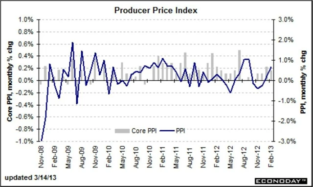Index cen výrobců ve Spojených státech za únor: +0,7 % meziměsíčně (leden: +0,2 %, odhad: +0,6 %) a +1,7 % meziročně