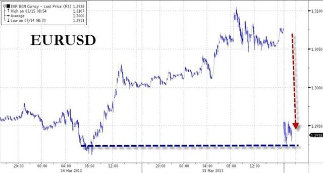 Ministři financí zemí eurozóny se v noci na sobotu dohodli na programu pomoci Kypru v objemu až deseti miliard eur. Kypr ale v rámci dohody musí vybrat jednorázovou daň 9,9 % z bankovních vkladů nad 100 tisíc eur a 6,75 % u vkladů nižších.