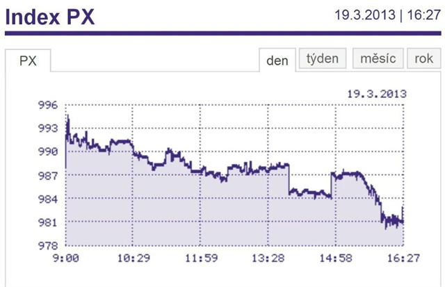 Index PX v úterý spadl o 0,72 % na 980,95 bodu.