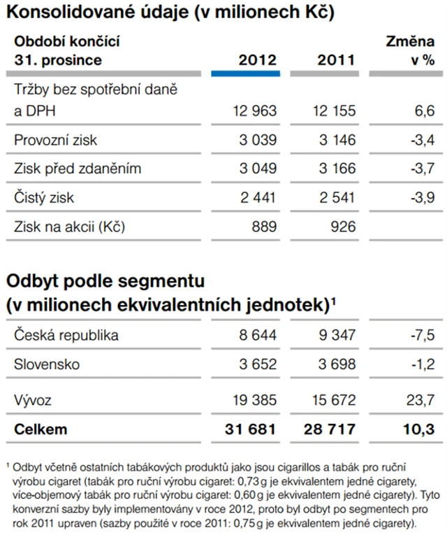 Tabáková firma, jejíž akcie se obchodují na burze v Praze, představila čísla za rok 2012. Její výsledky komentuje analytik z České spořitelny Josef Novotný.