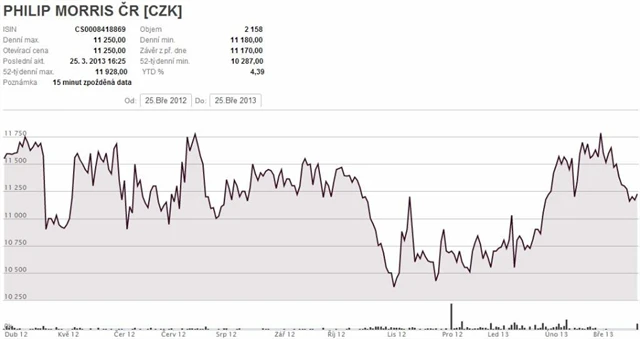 Tržby Philip Morris ČR v roce 2012 vzrostly o 6,6 %