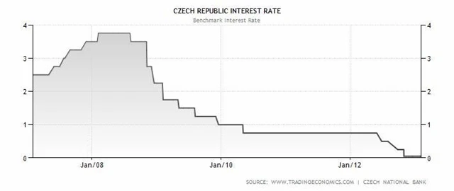 "Naše prognóza předpokládá sazby beze změny minimálně do konce roku 2014. Zvyšování sazeb bude poté pouze postupné. Dle guvernéra zůstanou sazby na technické nule, dokud se neobjeví významné inflační tlaky. A ty se podle našeho názoru letos ani příští rok neobjeví," uvedl analytik z Komerční banky Jiří Škop. Podle něj ČNB použije přímé devizové intervence, pouze pokud se objeví deflační rizika. Deflace ovšem zatím tuzemské ekonomice podle Škopa nehrozí.