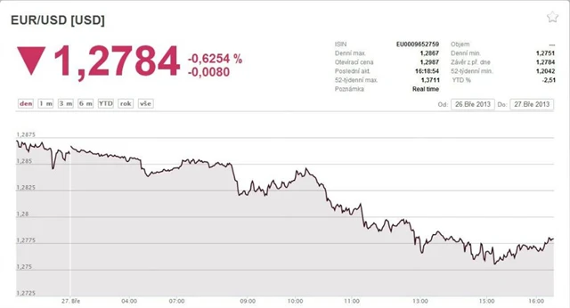 Euro kvůli patové situaci v Itálii a obavám z vývoje na Kypru padá pod 1,28 EUR/USD Redakce IW27. 3. 2013 | 16:21EuroEuroRedakce IW Další články autoraJak vydělat na jednorožcích dříve, než se na ně vrhnou investoři na burzeAkciový býk pádí vyspělými trhy. A není to jen americké témaTOP 10 článků týdne: Vize Nvidie, americké akcie a víra ve zlato DoporučujemeNestihli jste naskočit do zlaté rally? Vůbec není pozdě, říká stratégZlatoRychlé peníze ve velkém opustily zlato a stříbro. Trh se připravuje na další růstZlatoPříští vláda shrábne makroekonomický jackpotČeská ekonomika Aktualitydnes | 13:46USA: Firmy propustily v říjnu nejvíc lidí za 22 letdnes | 13:25Americký akciový trh nepraská, jen se ohýbá. Stále je co a proč nakupovat, říká expertdnes | 13:13Futures na americké akcie: Dow +0,03 %, S&P 500 +0,16 %, Nasdaq 100 +0,15 %dnes | 13:02Britská centrální banka nechala základní úrokovou sazbu na 4 %, už v prosinci by ale mohla měnovou politiku zase uvolnitdnes | 13:00Maloobchod v eurozóně v září stagnoval, růst držely jen Německo a Španělskodnes | 12:52Akcionáři Tesly dnes rozhodnou o rekordní odměně pro Elona Muskadnes | 12:45PMI ve stavebnictví ve Spojeném království klesl na 44,1 bodudnes | 12:42PMI ve stavebnictví v Itálii vzrostl na 50,7 bodudnes | 12:36PMI ve stavebnictví v Německu klesl na 42,8 bodudnes | 12:30PMI ve stavebnictví ve Francii klesl na 39,8 bodudnes | 12:23PMI ve stavebnictví v eurozóně klesl na 44 bodů, sektor dál ztrácí dynamikudnes | 12:17Nezaměstnanost ve Švýcarsku v říjnu stoupla na 2,9 %, nejvýše od březnaZobrazit všechny aktuality Nejčtenější tento týden1.Nestihli jste naskočit do zlaté rally? Vůbec není pozdě, říká stratég2.Rychlé peníze ve velkém opustily zlato a stříbro. Trh se připravuje na další růst3.Příští vláda shrábne makroekonomický jackpot4.Auto jako služba: Operativní leasing stále více láká domácnosti5.Dvě fakta o velkých akciových propadech, která vás možná překvapí6.Bank of America varuje: Americké akcie působí zdravě, ale trh uvnitř hnije Sledujte násinvesticniweb.cz14000Investiční web19300LIVE2300Investiční web1000investicni_web500Investicniweb.cz33600