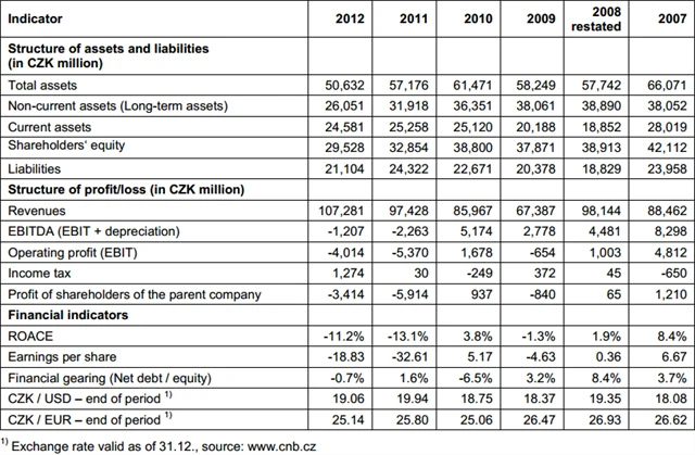 Výsledky skupiny Unipetrol byly v roce 2012 ovlivněny jednorázovým zaúčtováním nepeněžní ztráty ze snížení hodnoty klíčového rafinérského aktiva, České rafinérské, ve výši přibližně 4,075 miliardy korun. Provozní ztráta skupiny loni klesla na 4,014 miliardy z předloňské ztráty 5,37 miliardy korun.