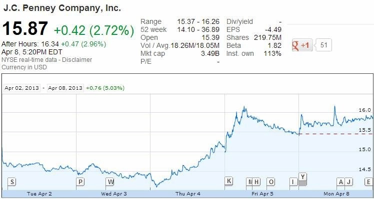 Jeden z nejvíce sledovaných amerických maloobchodních řetězců J.C. Penney se zbavil svého ředitele Rona Johnsona. Akcie na zprávu zareagovaly růstem až o 10 %.