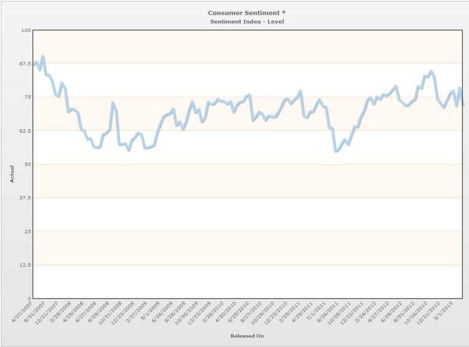 Index spotřebitelské důvěry Michiganské univerzity v dubnu 72,3 bodu (odhad: 78,6 bodu, březen: 78,6 bodu) Redakce IW12. 4. 2013 | 15:56Spotřebitelská důvěraZdroj: BloombergSpotřebitelská důvěraRedakce IW Další články autoraTOP 10 článků týdne: Pád ruského dinosaura a privátní úžasná sedmičkaOčekávané výsledky světových firem v týdnu od 29. září: Nike, Tesco, Constellation BrandsSoutěž o 30 000 korun: Investománie startujeDoporučujemeRuské petroimpérium se hroutí. USA a OPEC zatloukají poslední hřebíky do rakveRuskoSen o finanční nezávislosti je zase o něco blíže, legendární pravidlo 4 % se měníInvestiční strategieÚroky padají a Češi hledají alternativu. INVESTIKA boduje s realitním fondemBrandVoice Aktualitydnes | 18:00Evropské akcie do října vstoupily růstem, hlavní indexy přidaly kolem procentadnes | 17:33Berkshire Hathaway jedná o koupi petrochemické divize Occidental za 10 miliard dolarůdnes | 17:17Ford ve 3. čtvrtletí zvyšuje prodeje, táhly je pickupy a elektromobilydnes | 16:57Britská vláda znovu požaduje po Applu přístup k šifrovaným datům iCloududnes | 16:45Pražská burza se ve středu vrátila k růstu, index PX stoupl na nové maximumdnes | 16:22Amazon spouští vlastní potravinovou značku, většina položek bude stát pod 5 dolarůdnes | 16:08USA: Index nákupních manažerů ve výrobě od ISM v září stoupl na 49,1 bodu (odhad: 49 bodů, srpen: 48,7 bodu)dnes | 15:47USA: Výrobní PMI v září podle finálních dat S&P Global klesl na 52 bodů v souladu s odhady (srpen: 53 bodů)dnes | 15:42Americké akcie v úvodu: Dow +0,01 %, S&P 500 -0,19 %, Nasdaq Composite -0,33 %dnes | 15:31Meta využije konverzace s AI k cílení reklam na Facebooku a Instagramudnes | 15:14Cena zlata vystoupala na nový rekorddnes | 14:42OpenAI a Samsung spojí síly na AI megaprojektu StargateZobrazit všechny aktuality Nejčtenější tento týden1.Ruské petroimpérium se hroutí. USA a OPEC zatloukají poslední hřebíky do rakve2.Sen o finanční nezávislosti je zase o něco blíže, legendární pravidlo 4 % se mění3.Úroky padají a Češi hledají alternativu. INVESTIKA boduje s realitním fondem4.Hra s ohněm? Akcie jsou extrémně drahé, varuje Buffettův oblíbený indikátor5.Michal Šnobr: Zestátnění ČEZ? Ano, ale za správnou cenu6.Nezařazení Strategy do indexu S&P 500 a vzkaz ostatním: Musíte něco dělat, držet bitcoin nestačí Sledujte násinvesticniweb.cz14000Investiční web19300LIVE2300Investiční web1000investicni_web500Investicniweb.cz33600