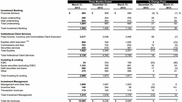 K vyššímu zisku Goldman Sachs pomohly lepší výsledky v divizi investičního bankovnictví. "Jsme se svým čtvrtletním výkonem spokojení," uvedl generální ředitel společnosti Lloyd Blankfein. Upozornil, že banka ve čtvrtletí pociťovala hrozbu makroekonomické nestability, která tlumila aktivity investorů i podniků.