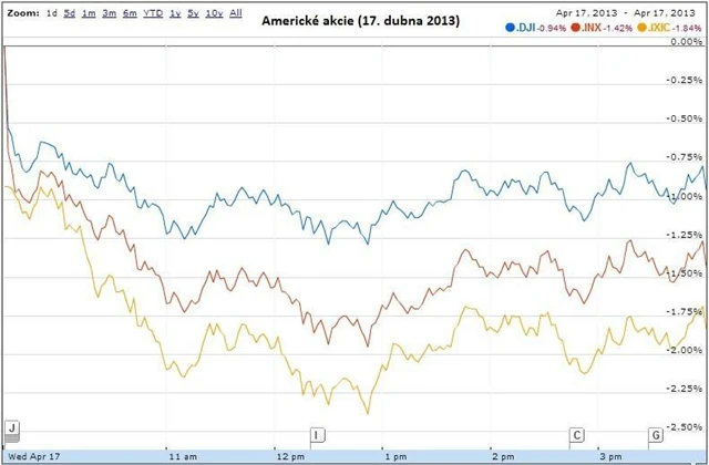 Americké akcie ve středu otevřely v červených číslech a ve ztrátě zůstaly po celé obchodování.