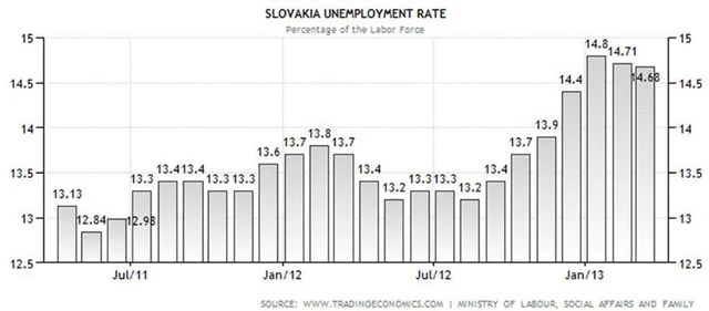Nezaměstnanost na Slovensku je jednou z nejvyšších v EU. Situace na trhu práce se v zemi zhoršovala prakticky nepřetržitě od propuknutí globální ekonomické krize v roce 2009 až do začátku letošního roku, kdy nezaměstnanost vystoupila na nejvyšší úroveň od dubna roku 2004, a to na 14,8 %.