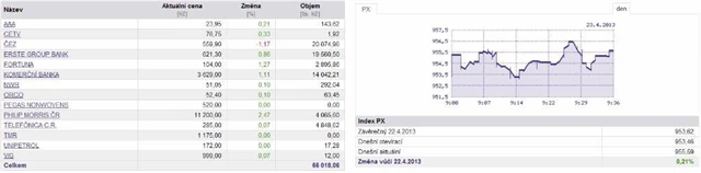 Pražská burza zahájila úterý na nule kvůli ČEZ Redakce IW23. 4. 2013 | 9:20Akcie ČRZa horší výkon akcií ČEZ může návrh dividendy 40 Kč na akcii. ČEZ na dividendách zaplatí 21,5 miliardy korun (53,6 % ze zdaněného zisku)Akcie ČRRedakce IW Další články autoraTOP 10 článků týdne: Investiční tipy, Moskva vůči Pekingu a AI pokaždé jinakOčekávané výsledky světových firem v týdnu od 10. listopadu: Walt Disney, Cisco Systems, RWE, ČEZJak vydělat na jednorožcích dříve, než se na ně vrhnou investoři na burze DoporučujemeNestihli jste naskočit do zlaté rally? Vůbec není pozdě, říká stratégZlatoRychlé peníze ve velkém opustily zlato a stříbro. Trh se připravuje na další růstZlatoPříští vláda shrábne makroekonomický jackpotČeská ekonomika Aktualitydnes | 18:00Evropské akciové indexy v pátek i za celý týden kleslydnes | 16:59Zlato směřuje k nejlepší výkonnosti od roku 1979dnes | 16:45Pražská burza i v pátek stoupla a index PX znovu vylepšil zavírací maximumdnes | 16:32Společnost Trump Media prohloubila čtvrtletní ztrátu, její náklady prudce rostoudnes | 16:16USA: Spotřebitelská nálada se propadla téměř na historické minimumdnes | 15:52Šéf Bundesbanky používá umělou inteligenci k analýze tónu svých projevůdnes | 15:27Italská banka Intesa Sanpaolo rozšiřuje digitální investiční služby do Belgie a Lucemburskadnes | 15:09Propad kryptoměn vymazal téměř všechny letošní ziskydnes | 14:47Kanada: Nezaměstnanost v říjnu klesla na 6,9 %dnes | 14:38Americké akcie v úvodu: Dow -0,84 %, S&P 500 -1,12 %, Nasdaq Composite -1,89 %dnes | 14:31Tržby Wendy’s klesly, zákazníci omezují útraty za rychlé občerstvenídnes | 14:14Šéf newyorského Fedu: Centrální banka může brzy znovu začít nakupovat dluhopisyZobrazit všechny aktuality Nejčtenější tento týden1.Nestihli jste naskočit do zlaté rally? Vůbec není pozdě, říká stratég2.Rychlé peníze ve velkém opustily zlato a stříbro. Trh se připravuje na další růst3.Příští vláda shrábne makroekonomický jackpot4.Dvě fakta o velkých akciových propadech, která vás možná překvapí5.Bank of America varuje: Americké akcie působí zdravě, ale trh uvnitř hnije6.AI euforie žene index S&P 500 do extrémů. Bank of America radí, kam teď "schovat" peníze Sledujte násinvesticniweb.cz14000Investiční web19300LIVE2300Investiční web1000investicni_web500Investicniweb.cz33600