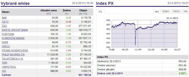 Pražská burza v úterý posilovala. Index PX připsal 0,53 %.