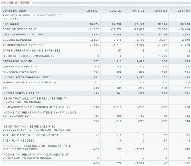 Výsledky Electrolux za 1Q2013: Čistý zisk 361 milionů švédských korun (odhad: 517,5 milionu švédských korun)