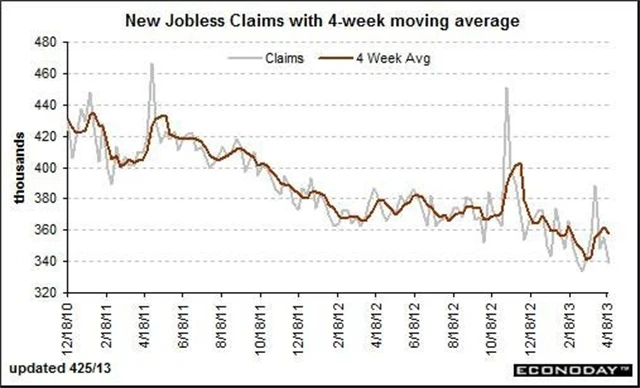 USA: Týdenní počet nových žádostí o podporu v nezaměstnanosti klesl na 339 tisíc (odhad: 350 tisíc, předchozí 355 tisíc po revizi z 352 tisíc)