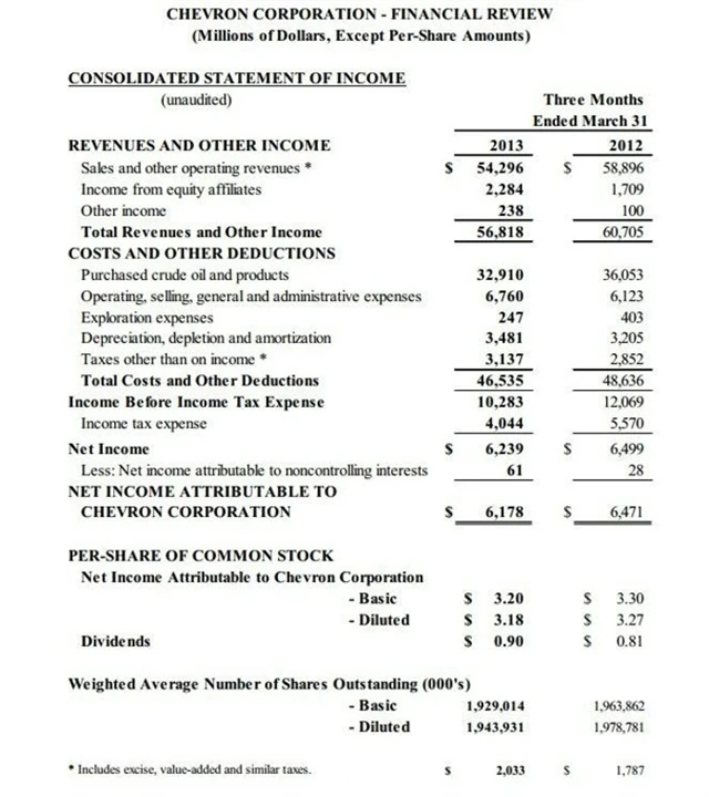 Chevron sídlí v Kalifornii a je druhým největším těžařem ropy v USA. Na jednu akcii firma v prvních třech měsících roku vydělala 3,18 dolaru, zatímco analytici v anketě agentury Reuters v průměru čekali zisk 3,09 USD na akcii.