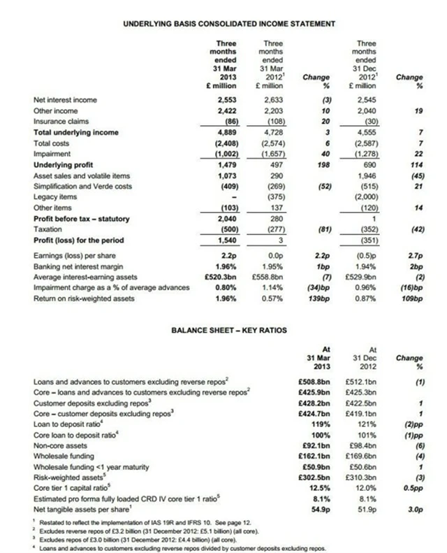 Výsledky Lloyds Banking Group v 1Q: Zisk na akcii 2,2 pence (v minulém čtvrtletí ztráta 0,5 pencí), tržby 4,889 miliardy liber (odhad: 4,587 miliardy liber)