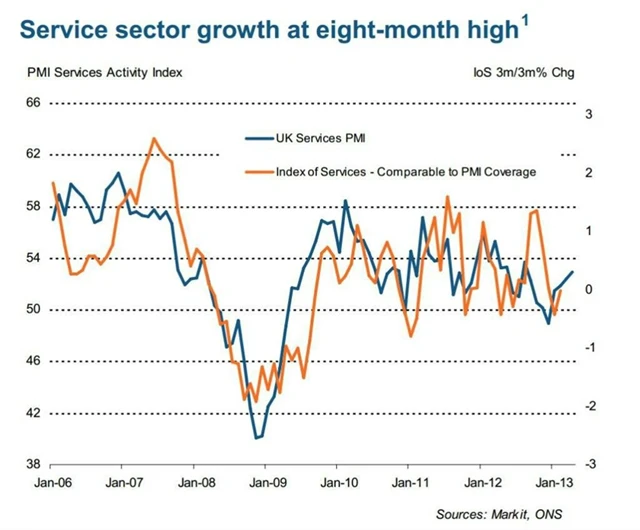 Zlepšování sektoru služeb, které bylo od počátku roku zřetelné, se v dubnu dále potvrdilo. Index nákupních manažerů vzrostl na 52,9 bodu z březnových 52,4 bodu. Aktivita v odvětví rostla nejrychlejším tempem za posledních 8 měsíců, výrazně přibylo i nových firem v sektoru a mírně vzrostla i zaměstnanost.