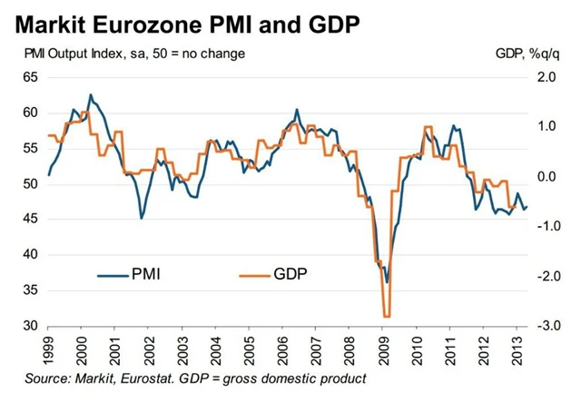 PMI Composite 46,9 bodu (flash: 46,5 bodu, březen: 46,5 bodu).