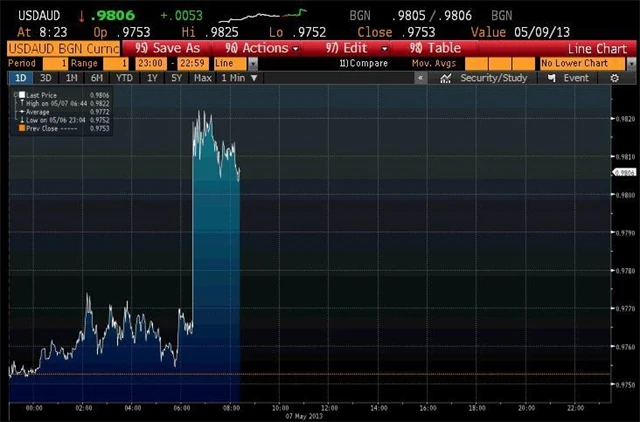 Australský dolar v reakci na to oslabil na minimum od 4. března 2013.