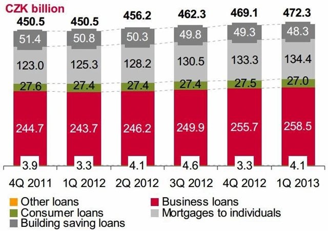 Úvěry banky vzrostly meziročně o 4,8 % na 472,3 miliardy Kč. Nejvíce se dařilo segmentům hypoték a půjček velkým klientům. Byznys úvěry vzrostly o 6,1 %, hypotéky o 7,3 %.