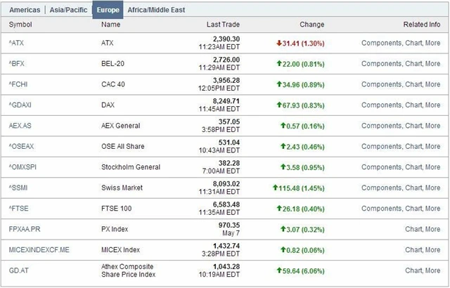 Evropské akciové trhy ve středu prodloužily růstovou sérii a například index DAX dále posunul své historické maximum. Trhům pomohly výsledky některých důležitých evropských firem a statistika z německého průmyslu - výroba v největší evropské ekonomice v březnu překvapivě meziměsíčně vzrostla o 1,2 % díky zvýšení produkce kapitálového a spotřebního zboží, polotovarů i energie. Již v úterý přišly z Německa zprávy o nečekaném zvýšení německých průmyslových zakázek za březen.