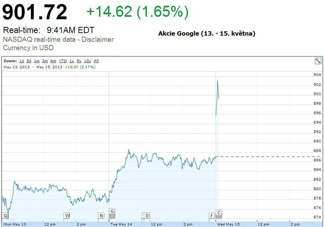 Google se vyšplhal nad 900 USD za akcii Redakce IW15. 5. 2013 | 15:40Alphabet (Google)Zdroj: CNBCAlphabet (Google)Redakce IW Další články autoraTOP 10 článků týdne: Investiční tipy, Moskva vůči Pekingu a AI pokaždé jinakOčekávané výsledky světových firem v týdnu od 10. listopadu: Walt Disney, Cisco Systems, RWE, ČEZJak vydělat na jednorožcích dříve, než se na ně vrhnou investoři na burze DoporučujemeNestihli jste naskočit do zlaté rally? Vůbec není pozdě, říká stratégZlatoRychlé peníze ve velkém opustily zlato a stříbro. Trh se připravuje na další růstZlatoPříští vláda shrábne makroekonomický jackpotČeská ekonomika Aktualitydnes | 18:00Evropské akciové indexy v pátek i za celý týden kleslydnes | 16:59Zlato směřuje k nejlepší výkonnosti od roku 1979dnes | 16:45Pražská burza i v pátek stoupla a index PX znovu vylepšil zavírací maximumdnes | 16:32Společnost Trump Media prohloubila čtvrtletní ztrátu, její náklady prudce rostoudnes | 16:16USA: Spotřebitelská nálada se propadla téměř na historické minimumdnes | 15:52Šéf Bundesbanky používá umělou inteligenci k analýze tónu svých projevůdnes | 15:27Italská banka Intesa Sanpaolo rozšiřuje digitální investiční služby do Belgie a Lucemburskadnes | 15:09Propad kryptoměn vymazal téměř všechny letošní ziskydnes | 14:47Kanada: Nezaměstnanost v říjnu klesla na 6,9 %dnes | 14:38Americké akcie v úvodu: Dow -0,84 %, S&P 500 -1,12 %, Nasdaq Composite -1,89 %dnes | 14:31Tržby Wendy’s klesly, zákazníci omezují útraty za rychlé občerstvenídnes | 14:14Šéf newyorského Fedu: Centrální banka může brzy znovu začít nakupovat dluhopisyZobrazit všechny aktuality Nejčtenější tento týden1.Nestihli jste naskočit do zlaté rally? Vůbec není pozdě, říká stratég2.Rychlé peníze ve velkém opustily zlato a stříbro. Trh se připravuje na další růst3.Příští vláda shrábne makroekonomický jackpot4.Dvě fakta o velkých akciových propadech, která vás možná překvapí5.Bank of America varuje: Americké akcie působí zdravě, ale trh uvnitř hnije6.AI euforie žene index S&P 500 do extrémů. Bank of America radí, kam teď "schovat" peníze Sledujte násinvesticniweb.cz14000Investiční web19300LIVE2300Investiční web1000investicni_web500Investicniweb.cz33600