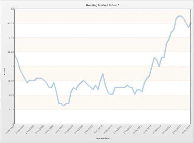 Americký index trhu s bydlením NAHB v květnu vzrostl na 44 bodů v souladu s odhady (duben revidován na 41 bodů z 42 bodů, odhad: 44 bodů)