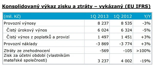 Úvěrové portfolio dále rostlo a ke konci března 2013 dosáhlo 489,1 miliardy korun. 9% meziroční nárůst byl tažen hypotékami (meziročně +11 %), korporátními úvěry (meziročně +20 %) a SME úvěry (meziročně +8 %). Díky růstu běžných a spořicích účtů objem vkladů vzrostl na 626,7 miliardy korun, což je meziročně 2% růst.