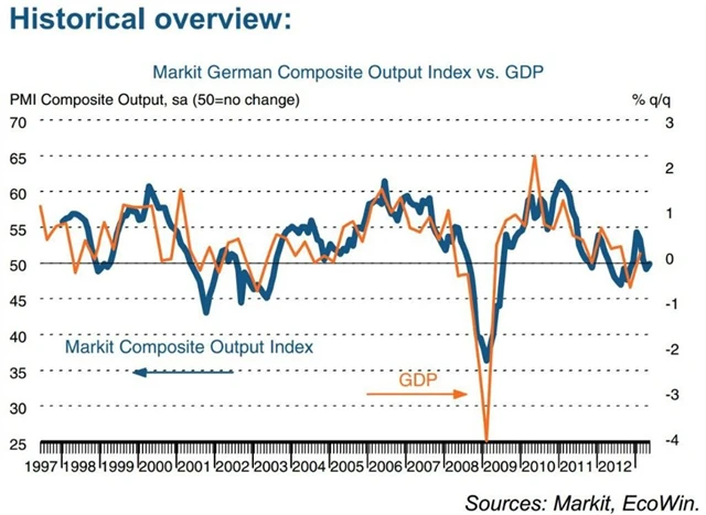 V dubnu předběžně nečekaně klesl na 47,9 bodu z březnových 49 bodů (čekala se stagnace na 49 bodech), finální hodnota indexu byla však nakonec upravena na mírně vyšších 48,1 bodu. I přesto německý zpracovatelský sektor stále stagnuje.