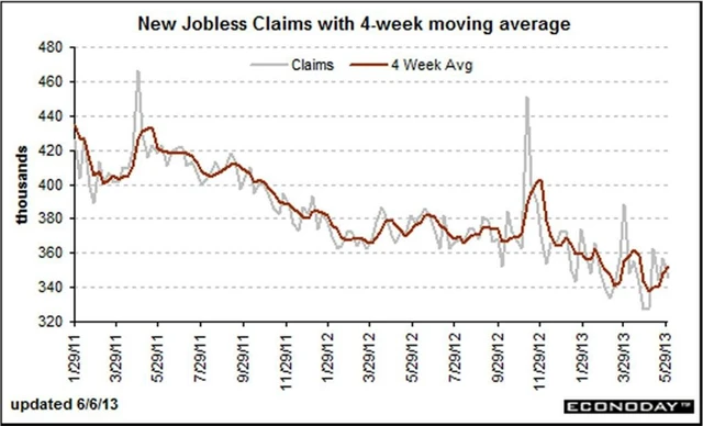Týdenní počet nových žádostí o podporu v nezaměstnanosti klesl o 11 tisíc na 346 tisíc, čekal se pokles na 345 tisíc. Předchozí týden byl revidován z 354 tisíc na 357 tisíc.