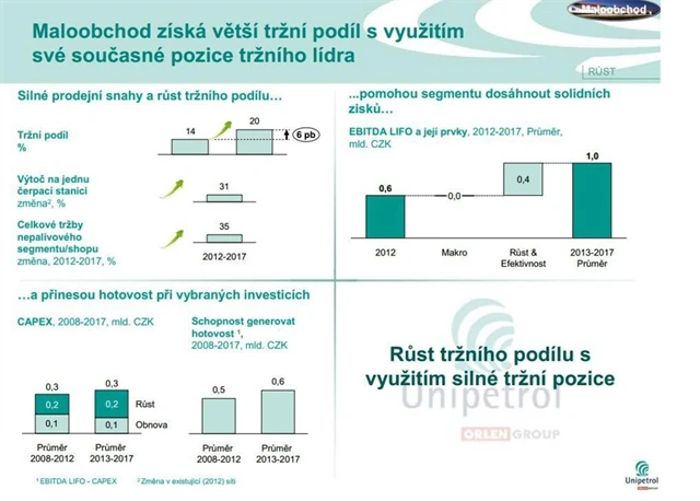 Unipetrol chce v letech 2013 až 2017 provozní zisk 25 miliard Kč