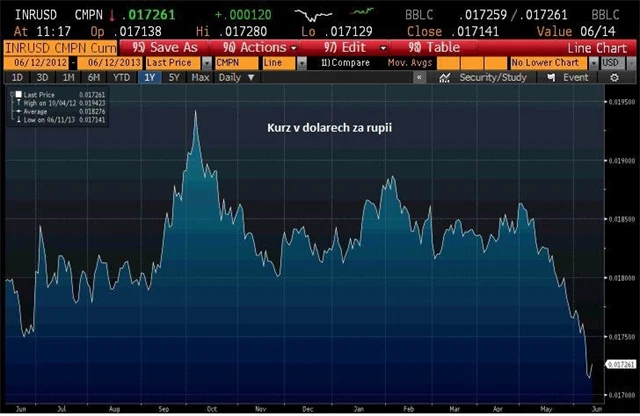 Podle průzkumu agentury Bloomberg nabídne letos rupie dolarovým investorům výnos 9,28 procenta a stane se tak nejvíce rostoucí měnou po jihoafrickém randu. Místo toho zatím ztrácí.