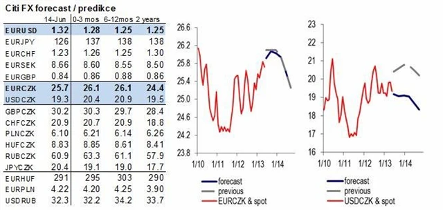 Analytici City očekávají v následujících 3 až 12 měsících kurz mezi 26 a 26,1 Kč/EUR. Ve dvouletém horizontu čekají 24,3 Kč/EUR.