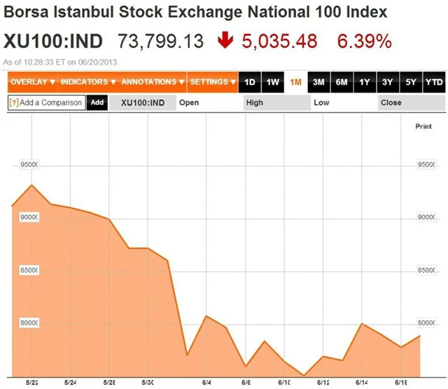 Turecký burzovní index ISE 100 uzavřel čtvrteční obchodování se ztrátou 6,8 %. Od posledního vrcholu, kterého dosáhl 22. května, tak odepsal již 21 % a oficiálně vstoupil na medvědí trh.