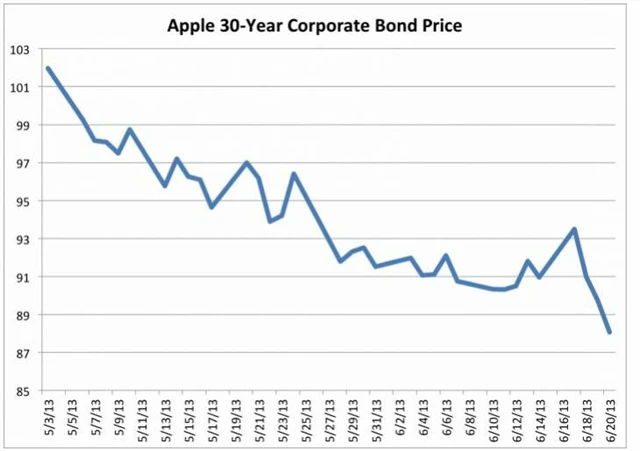 Dnes jsou úroky desetiletých amerických dluhopisů na 2,41 % a dluhopisy Applu byly smeteny.