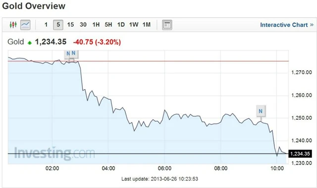 Zlato dnes spadlo už na 1233,25 dolarů za unci.