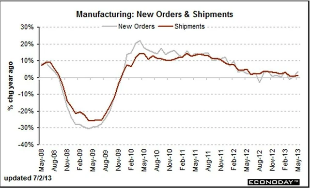 Podnikové objednávky ve Spojených státech v květnu vzrostly více, než se čekalo, což by mohlo značit, že se zpracovatelský sektor postupně stabilizuje. Analytici čekali růst o 2 %, namísto toho objednávky poskočily o 2,1 % a dubnové údaje byly revidovány na +1,3 % z +1,0 %.